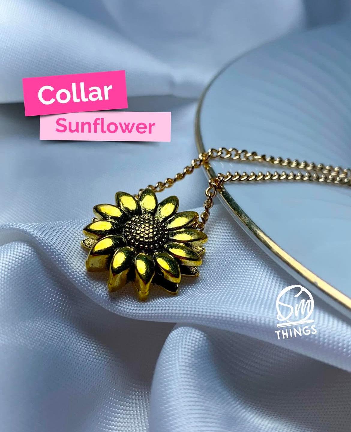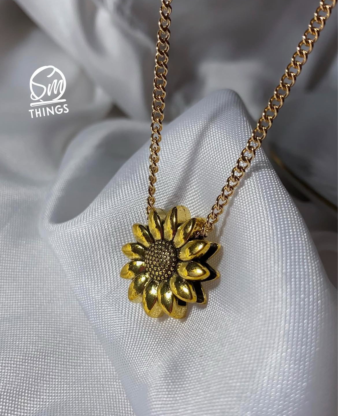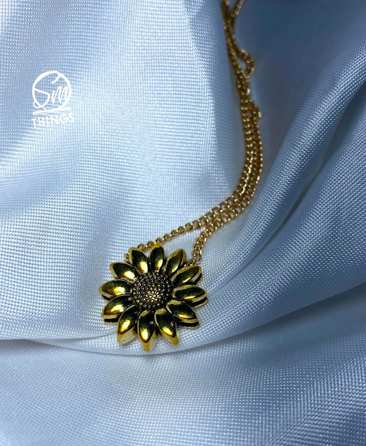 Collarcito de acero dorado con dije de zamak en forma de girasol 💫