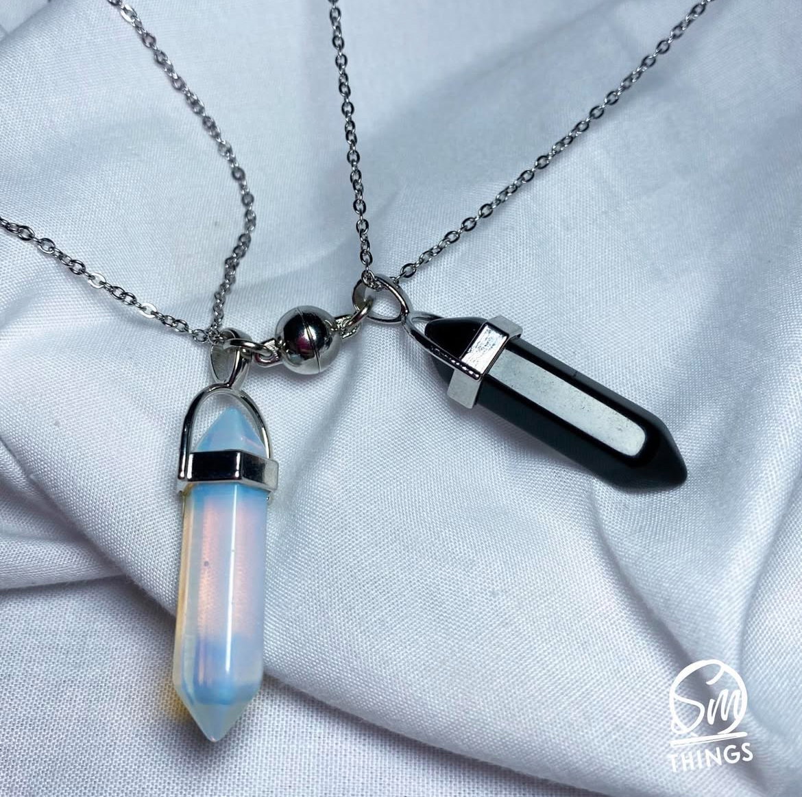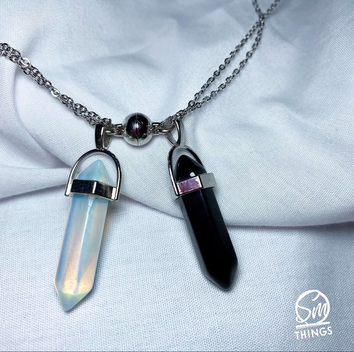 collarcitos para compartir, piedra lunar y piedra de ónix negro ☁️ acero quirúrgico (imanes de acero quirúrgico opcionales)