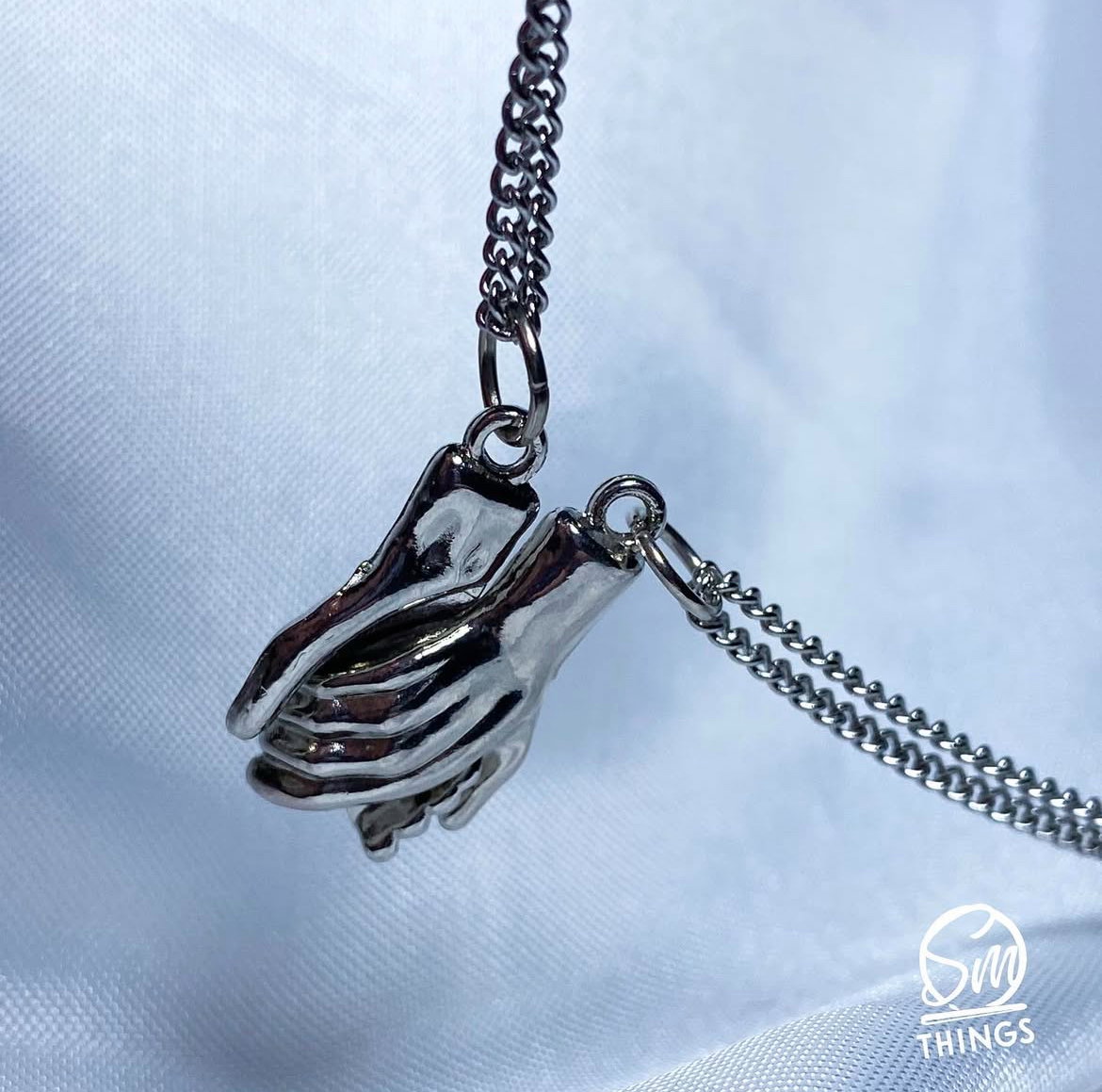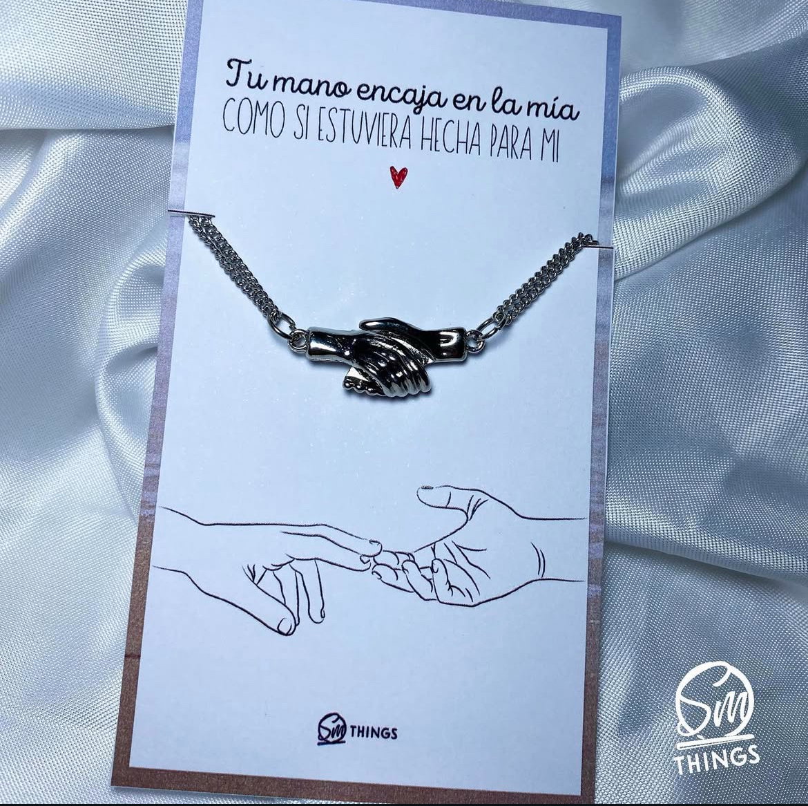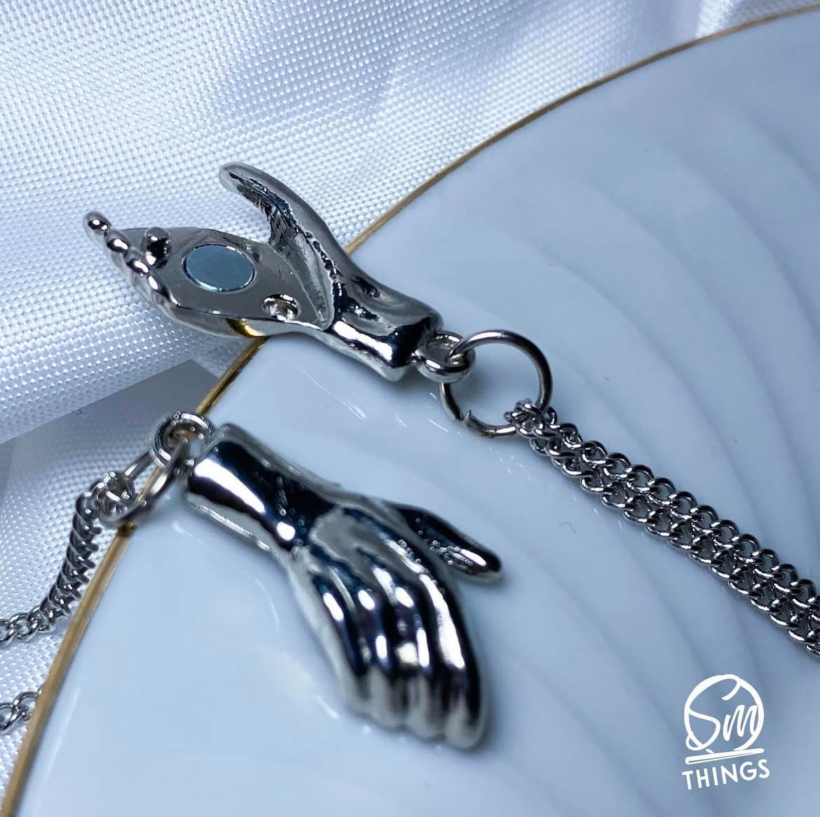 collarcitos de acero quirúrgico con dijes imantados, manitos que se agarran al contacto✨