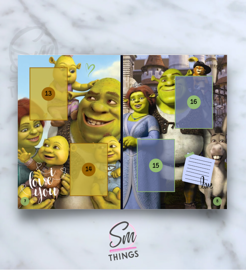 • Diseño Shrek con personalización de iniciales, se le personaliza las iniciales de la contratapa!