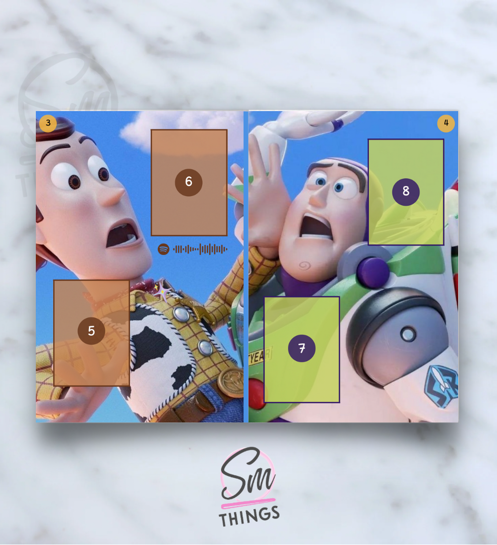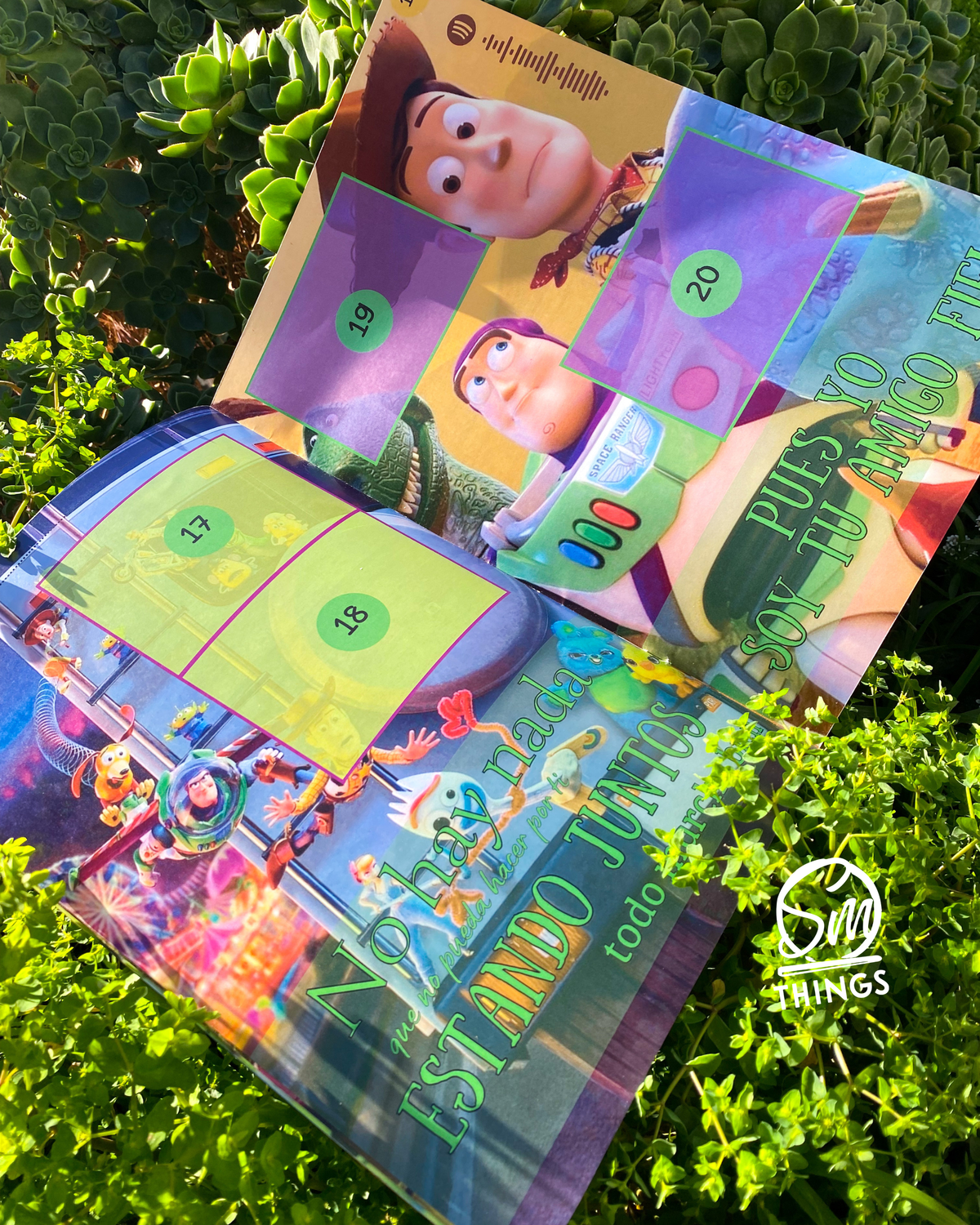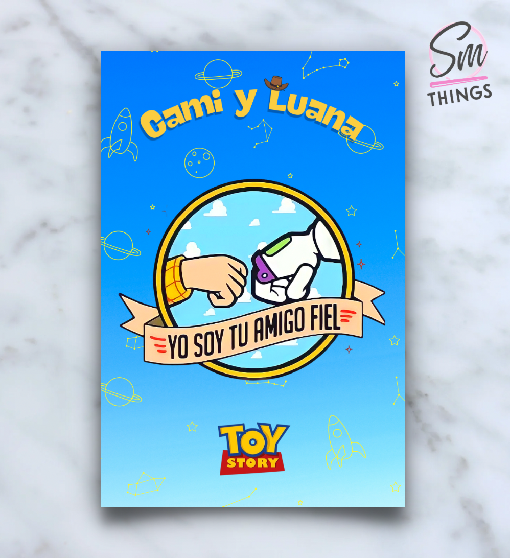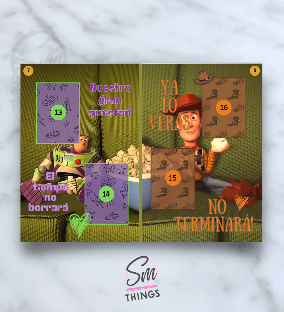 • Diseño Toy’s Story con personalización del nombre / título en la tapa y contratapa, y de dos canciones con código Spotify 🎶